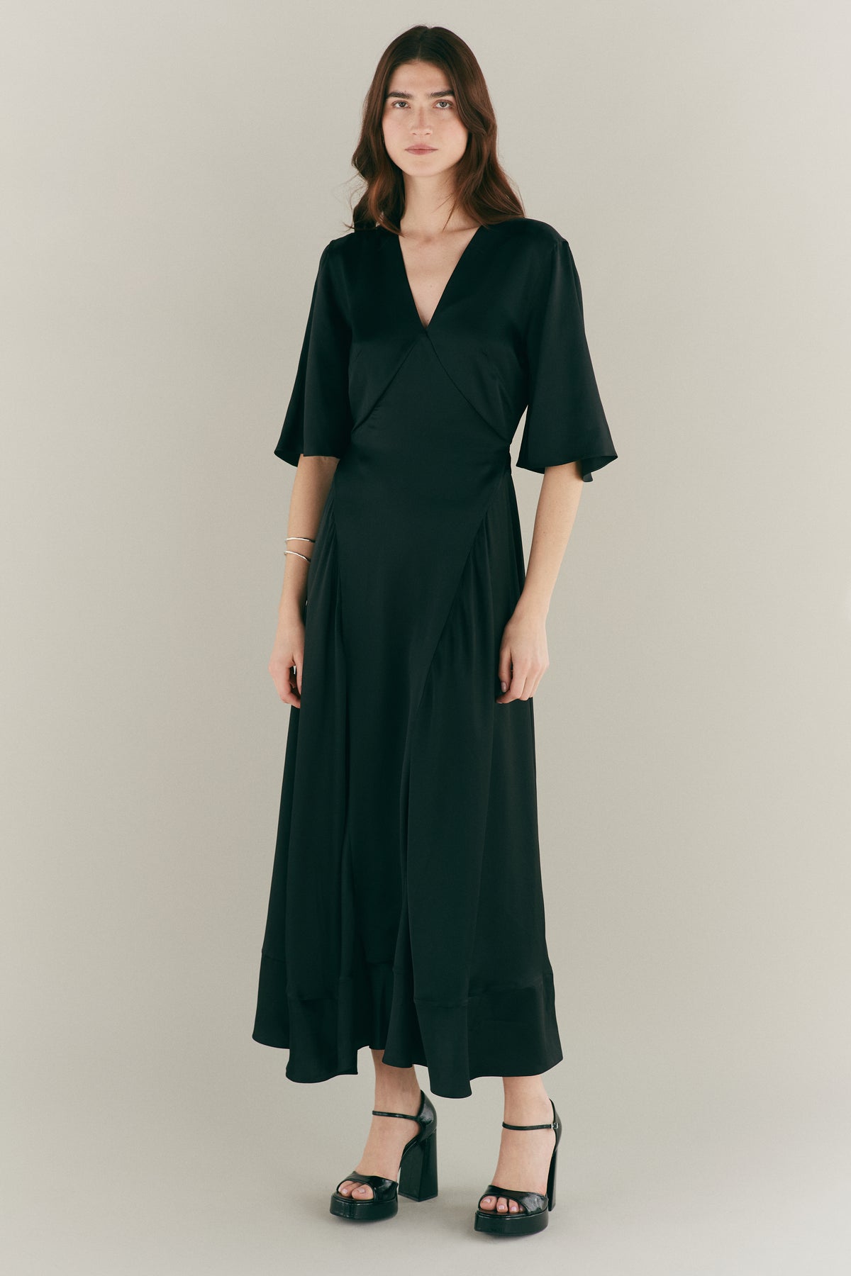 Open Back Black Silk Floaty Dress